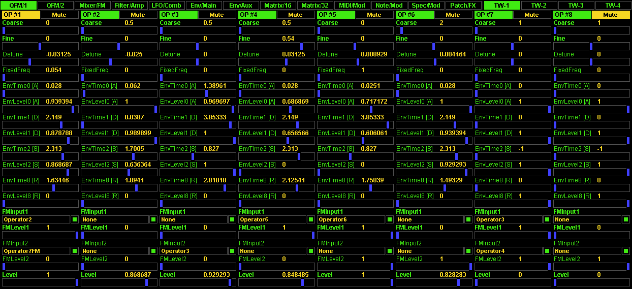 Most of them probably don't sound very close to the actual DX7 but they should serve as an excellent starting point for making new patches as there aren't many QFM patches that come with Tranzistow.