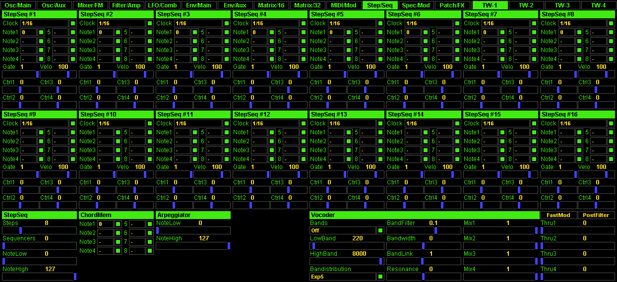 In global, Tranzistow (this is not a mistake - it is not "Transistow") is a multitimbral multithreaded virtual software synthesizer with 8 independent multimode parts (and much more in private/internal versions).