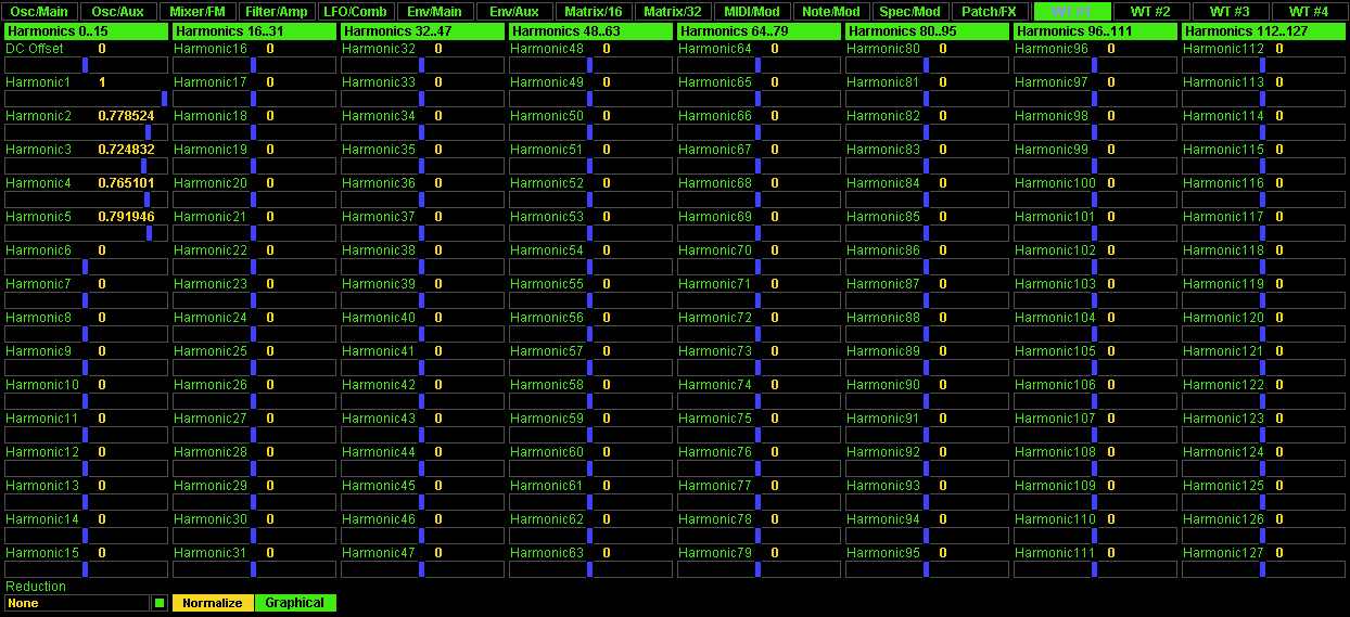 Various forms of synthesis are supported including Additive, Virtual Analog/Modeling (VA), Wavetable (with classic, crossfade and full wave interpolation modes), two completely independent FM engines (oscillator FM + QFM),