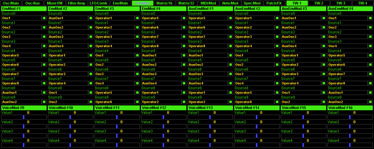 Various forms of synthesis are supported including Additive, Virtual Analog/Modeling (VA), Wavetable (with classic, crossfade and full wave interpolation modes), two completely independent FM engines (oscillator FM + QFM),